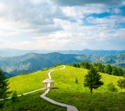 秋山风景区位于石家庄市灵寿县,距离石家庄市区车程约50公里,是一片以山岭风光为主的自然风景区,也是石家庄市周末郊游的好出去。秋山并不太高,从山下爬到山顶大约2小时左右即可,山间有树林、湖泊和小瀑布等景色,环境秀丽优美。爬山的步道主要是石板台阶,比较好走,有槐树沟、野杏沟、椒树沟、野果沟等多处,可以选择从一条上山,另一条下山。