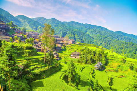 "梯田层叠,体验侗寨风情"