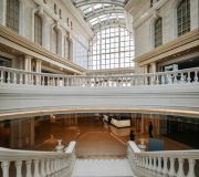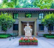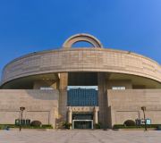 上海自然博物馆位于静安雕塑公园,场馆宛如一只“绿螺”,外观独特。如今的新馆内展出了上万件标本藏品,内容丰富,尤其以一副体长约26米的中加马门溪龙的骨架甚是抢眼。