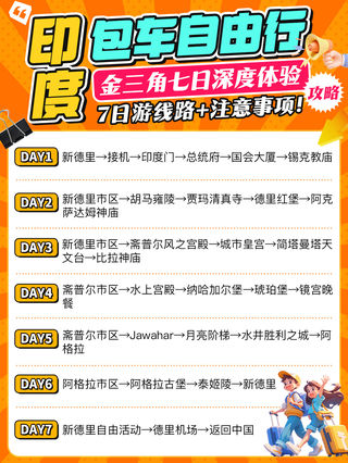 阿克萨达姆神庙是印度目前较大的神庙,历时5年、上万人参与修建的宗教建筑群被列入吉尼斯世界纪录。在体现印度宗教艺术的同时,这里也是新德里的娱乐休闲之地。神庙主建筑由赭红砂石和白色大理石构成,坐落于148只全尺寸大象雕像上的主殿,共有9个穹顶和239根装饰柱。殿内有一座3米高的纳拉扬镀金神像以及2000多座印度教神像,神态各异。立柱上雕刻精美绝伦,壁画色彩鲜艳,整座神殿华丽优雅,处处体现着精美的宗教艺术。