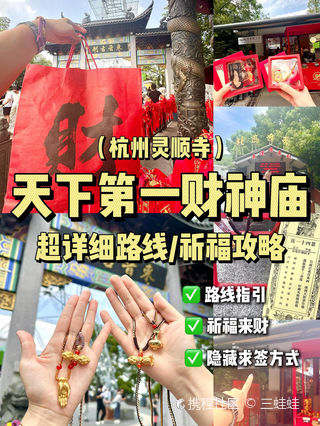 该庙原名灵顺寺,位于杭州北高峰山巅,建于东晋,是印度高僧慧理在杭所建“五灵”(灵鹫、灵隐、灵峰、灵顺、灵山)之一,距今已有1600多年历史。北宋初年,因寺内供奉了“五显财神”,民间开始称其为“天下第一财神庙”。