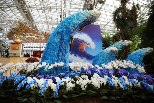 "观赏各色花卉园艺"