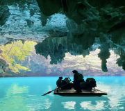 凤山世界地质公园核心景区万寿谷胜境位于寿源和地质公园美乡村,距离三门海1公里,是天窗群中的第六天窗。景区游览总长度为1600米,全程游览时长约为1.5小时。谷中有世界上较大的天生桥、世界上较高较长的洞内峡谷长廊、有洞内规模较大的石林带、有桂西保存完整的红七军兵工厂遗址,还有洞内天坑、神奇灵验的“寿神”、丰富的钟乳石雄伟壮观、晶莹万态的地质秘景,洞中藏有一万个寿字、一万个寿桃、一万尊百岁老人、十万个负氧离子和五谷杂粮俱全的长寿大餐…;…;是一部喀斯特地质遗迹的教科书。谷中地下峡谷河水流经三门海汇成长寿母亲河——盘阳河景区。