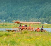 大盈江从北向南贯穿腾冲,在流经腾冲县城西时,遇到巨大的断层崖,水流从46米高的崖头跌下深潭,响声雷动,水花四溅,形成了“不用弓弹花自散”的壮丽景观,河水仿佛被叠为二折,故俗称叠水河瀑布。