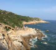 双月湾在惠东县港口镇,整个海湾从空中俯瞰好像两轮背对的新月,故名双月湾。双月湾的奇特之处在于,这里左湾水平如镜,右湾波涛汹涌,一静一动。相对于不远的巽寮湾,算是一个还没被过度开发的景点。