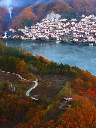 这里不是国外 这里是丹东宽甸的一个小山村 赏秋还可以滑雪的地方 沿着本桓公里 赏秋最后一站 宽甸天桥