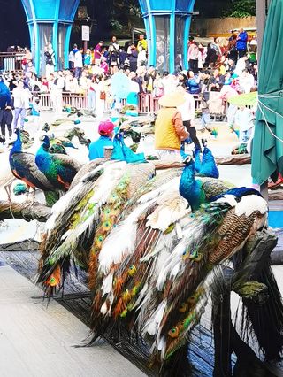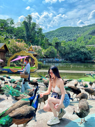 西双版纳孔雀山庄位于景洪市西双版纳原始森林公园,内有众多孔雀,可以近距离观赏,带小朋友来这游玩是一个不错的选择。西双版纳孔雀山庄每天有几个时间点会进行孔雀放飞表演,一定不要错过。许多只孔雀从对面的山上翩翩起舞,飞到草地上,场面十分壮观。孔雀湖中建有两座别致的亭阁,一座叫王子亭,一座叫公主阁,传说这是召树屯与孔雀公主喃木诺娜在金湖边相遇、定情的动人场地。