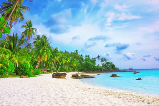 "拥有白沙海滩和珊瑚礁群"