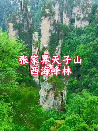西海峰林位于索溪峪西北,是整个张家界国家森林公园峰林集中的地方,也是漂亮的地方之一,在群山环抱、深不可测的“桶”形盘谷中有数以千计的奇峰怪石拔地而起森列谷中,就像一支神勇的军队,云雾升起的时候更显得气势恢宏,尤为壮观,而张家界的标志御笔峰也正是这西海峰林中出类拔萃者。从贺龙公园往下看,便可见武林源的绝景——西海峰林。在建筑师看来,石峰如塔、如柱、如屏、如楼、如堡、如墙,次节比鳞错落有致,在展现宏伟的蓝图;在艺术家看来,石峰似人、似佛、似鸟、似兽、似花、似树,生动逼真唯妙唯肖,似一幅彩色的画卷;在军事家看来,石峰有将、有兵,有鼓、有旗、有车、有马,威武雄壮严阵待发,像一支天降的军队。有诗云:“试看西海云雾中,御笔峰端指长空。奇峰异石观景台,三山五岳败下风。”道出西海峰林的旷世美景,的地质学家国达先生曾说:“赏闻世上石林峰林不少,但就现在已知者而论,能与张家界砂岩峰林比美者不多。”赞它是“峰林之珏”,“稀世之珍”的天下奇观。