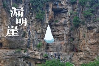 漏明景区位于洛阳新安县,是河谷东面山坡延伸进谷壑中的一道岩壁。景区内怪石耸立,岩壁薄处厚仅数米,两侧刀削斧斫一般,宛若一道天然石屏。峭壁的山岩上有一方石孔,贯通南北。远望石壁,透出一片天光,宛如天门,故称为漏明,又名阳岩,被誉为“北方小天坑”。豫西流传着一个歌谣:“漏明窟窿,响镗锣;倒栽和尚,拴马撅。”就是对这里景观的描述。