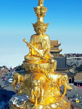 华藏寺是峨眉山高的寺庙,位于金顶的中心。寺庙的建筑使用了大量的铜,在阳光的照耀下,发出耀眼的光芒。寺庙依山势而建,高处是普贤殿,也被称为金殿或金顶,从而坐在的山峰也被称为“金顶”。华藏寺始建于东汉,但如今所建的寺庙是近年来复建的,如今的寺庙香火依然旺盛,吸引了众多的信众前来敬香。华藏寺前,就是的四面十方普贤像。