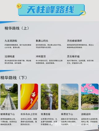 天柱峰国家森林公园位于秋收起义发源地——赣西北铜鼓县,总面积10512公顷,森林覆盖率高达95%。境内山清水秀、森林郁郁葱葱,既有群峰争艳,又有流泉飞瀑点缀其间,生态环境良好。公园由四大景区组成,分别是天柱峰景区、铜鼓石景区、大沩山景区、龙门崖景区。其中以天柱峰景区为,开发也较成熟,有开放时间限制且需要门票;其他三个景区尚未完全开发,所以是全天开放,游览无需门票。铜鼓石景区有一座高十余米的巨石,形如铜鼓,巨石峭壁上刻有“铜鼓石”三字,较为出名。天柱峰景区游览天柱峰景区需要乘船穿梭于各个景点之间。船只荡漾在九龙湖上,天柱峰、灵石庵、一线天、九龙瀑布等景点与之相依,可以欣赏到两岸绵延12公里的水上丹霞地貌,这里峰险、水秀、石异,是人少景美的旅游胜地。进入景区后由九龙湖码头上船,到达天柱峰码头,欣赏有“修江第一峰”之称的天柱峰,也是公园的象征。天柱峰三面环水,雄伟挺拔,屹立于景区中央。座落在天柱峰山腰岩洞中的灵石庵是一座千年古庙,香火不断。通往山腰的石径两旁树木郁郁葱葱,绕过一井清泉后就到了灵石庵观音殿,来此烧香祈福,祈求观音娘娘的保佑。沿着天柱峰码头旁的栈道至观音晒鞋景点,山上有一巨石形似女子绣鞋,相传观音娘娘曾被美景吸引来此观光游览,却不慎踏入潭中,便把绣鞋放在山石上晒。天柱峰的左侧是仅次于它的第二座石峰——象鼻山,它侧看酷似大象的鼻子,惟妙惟肖,是摄影的好去处。离开天柱峰码头前往瀑布码头,沿着青石板铺就的栈道行走,沿途森林密布,空气清新。路边是赣西北大的瀑布群——天柱飞瀑。天柱飞瀑由九条瀑布组成,他们飞流直下的气势磅礴,水声震耳欲聋,声势浩大让人叹为观止。