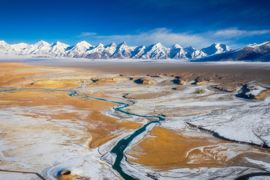 "山顶终年白雪覆盖"