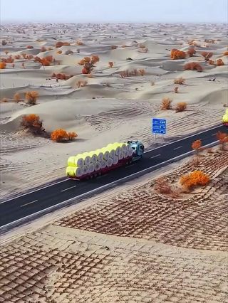 塔里木沙漠公路是目前世界上在流动沙漠中修建的大型公路。塔里木沙漠公路北起314国道轮台县东,经轮南油田、塔里木河、肖塘、塔中4油田和塔克拉玛干大沙漠,南至民丰县恰汗和315国道相连,南北贯穿塔里木盆地,全长522公里,其中穿越流动沙漠段长446公里。 公路于1993年3月动工兴建,1995年9月全部竣工。