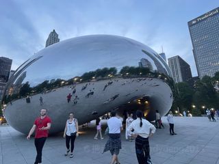 由安尼诗·卡普尔(Anish Kapoor)设计的云门位于千禧公园内,因其外形非常像一个豆子也常被称为“银豆子”,是芝加哥非常受游客欢迎的摄影地点。 云门的创作灵感来源于流动的水银,其如镜的表面可以映射出芝加哥美丽的城市天际线,而被称为“肚脐”的流线型拱门底部,则可以增加更多的反射面,是游客喜欢自拍的地方。当走入塑像中间时,整个空间呈现一种扭曲的感觉,会让人们产生固体变成液体的幻觉,这样的设计也增强其有趣的体验。