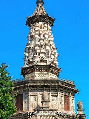 广惠寺华塔,又名多宝塔。坐落在河北正定县城内生民街路东高阜之上原来的广惠寺内。 1961年被列为全国重点文物保护单位。广惠寺华塔由主塔和附属小塔构成,全用砖砌。主塔底层四隅各附建一座六角扇形亭状小塔,小塔环抱主塔,高低错落,主次相依,精巧华丽,壮观秀逸。