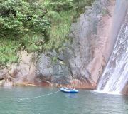 莲峰云海位于池州市青阳县南边,距县城约7、8公里,属于九华山脉的后山,主峰莲花峰是九华山脉九峰中的一座,为莲峰云海景区内的高峰,海拔1048米。不过莲峰云海与九华山风景区并不是同一个景区,莲峰云海在九华山的北边,两者的大门相距十几公里。相比九华山的盛名,莲峰云海还养在深闺中,非常清净,山上奇峰怪石众多,有瀑布可观,因常年云遮雾绕,所以叫“莲峰云海”。景区的山路呈“8”字型,从一边上山,另一边下山,不用走回头路。进景区大门后如果从右手边上山,先走一段沥青马路,马路尽头是一片巨石阵,秋天可在此赏石边树林的红叶。由此开始走台阶路,会经过藏经洞,弯腰躬身循着一条小道进洞,洞内有石桌石椅,南宋诗僧希坦曾在此禅修。再爬几分钟,就到了当地人信奉的干老石,据说在石头下烧些纸祈求疾病的治愈很灵验。继续向上攀爬,能听到溪水和瀑布声,先是看到一个个小瀑布,后看到高大的一挂瀑布便是狮子口瀑布。一般游客到达狮子口瀑布后即下山,往下走到一个平台,在边上的望阳亭可俯看山下的田园风光,回望山顶,有各种造型奇特的石头,险的是“达摩面壁”,还有的像猴子观涛,有的像东海神龟。到山脚后,你可以去徽派民居模样的民俗博物馆内,参观文革时的照片、海报,根雕,青阳农民画,了解青阳县的历史和农耕器具。另外,山上还有建于明成化十八年(公元1480年)全部用石头砌成的净信古寺,有一尊8米多长精美玉卧佛的圆通寺等寺庙可拜访。这样走一圈景区,玩得快的话约需2.5小时。狮子口瀑布位于景区“8”字型山路两个圆圈的交点上,是走山路的一个标志。瀑布往上还有道路通向山顶,一般游客只玩“8”字下面的那个圆圈,上面的那个圆圈非常大,算上到了山顶还要下山的时间,需要整整一天,山顶又没有住宿的地方,一般只有驴友、背包客才会继续往上爬。看日出的话,在狮子口瀑布那已能看到,当然越往山顶走效果越好,还能见到云海。景区内有四星级酒店莲峰云海酒店,位于山脚,前面有个大池子龙潭。如果追求日出或者想要爬到山上更高的地方,你可以晚上过来入住酒店,天不亮就登山,到尽量高的地方看日出,然后尝试登顶,量力而行,需掌握好时间下山。
