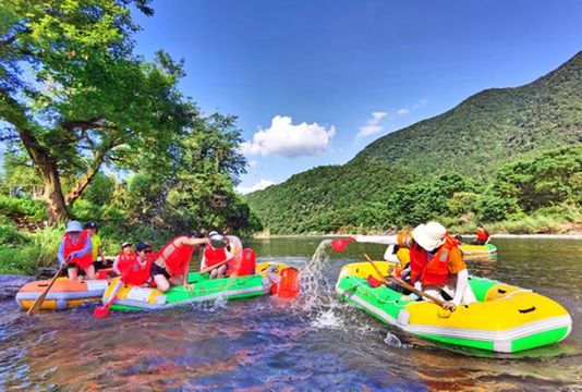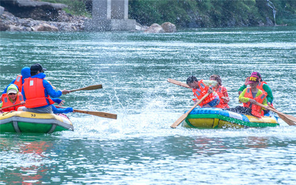 "乘坐皮筏感受漂流体验"