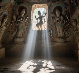 云冈石窟位于大同市城西约16公里的武州(周)山南麓、武州川的北岸,始建于北魏建都平城(今大同)的时代。和后期开凿的洛阳龙门石窟不同的是,云冈石窟不仅有中国传统艺术风格,也融合了古印度、西域和中原各民族的艺术特征。具有代表性的是第20窟(白佛爷洞)高13.75米露天释迦坐像,这尊塑像胸部以上保存得依然完整:面部半圆,深目高鼻,眼大唇薄,保留着典型的西域少数民族、印度人的面部特征。而龙门石窟中的大佛,则已经接近南朝士大夫的相貌了。云冈这尊释迦坐像的衣饰线条也不似龙门石窟那样柔和,而是透着北魏早期艺术的干练。