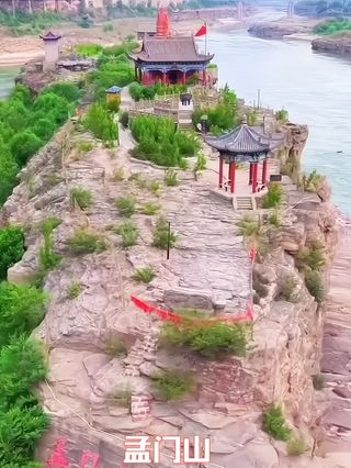在黄河谷底的河床中,有两块梭形的巨石,巍然屹立在巨流中,形成两个河心岛,就是古代被称为“九河之蹬”的孟门山,也叫做孟门岛。孟门山不但风光迷人,有“孟门夜月”之美。而且在研究黄河发育史中,也有重要的科学价值。