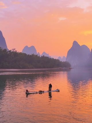 中国阳朔的"白沙渔火"是漓江上传承四百余年的传统渔事活动,也是"阳朔八景"中富有诗意的夜景之一。这一景观形成于漓江流经碧莲峰时形成的白沙湾,每当暮色降临,渔民们便驾着竹筏,点燃汽灯或火把,驱赶鸬鹚潜入水中捕鱼。数十张竹筏在江面游弋,点点渔火与月光、波光交相辉映,宛如繁星洒落江面,构成"一江灯火满江红"的绝妙画卷。自宋代起,这种独特的夜间捕鱼方式就因其艺术美感备受文人推崇。渔民们通过拍打水面、高声吆喝的方式驱赶鱼群,训练有素的鸬鹚则如利箭般穿梭捕鱼,整套流程充满韵律感,被澳大利亚学者奥格特姆誉为"自然与文化的交融"。“白沙渔火”不仅是渔民生活的一部分,更是阳朔文化的重要象征。它承载着历史的记忆,传递着人们对自然的敬畏和对生活的热爱。