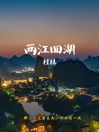 夜游桂林两江四湖景区乘船夜游桂林两江四湖景区可观赏到杉湖、榕湖、桂湖、木龙湖、漓江、桃花江市内段的山水风光,游览桂林市核心的风景带,体验能与威尼斯水城相媲美的环城水系。