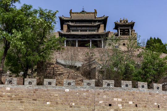 "碛口标志建筑,俯瞰古镇"