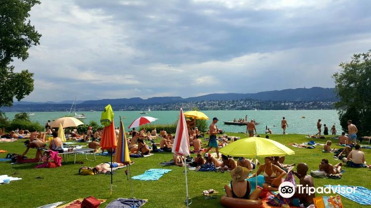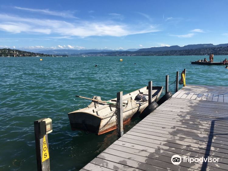这是一个位于苏黎世的海滩,这里景色优美,可以在这里游泳,享受日光浴。