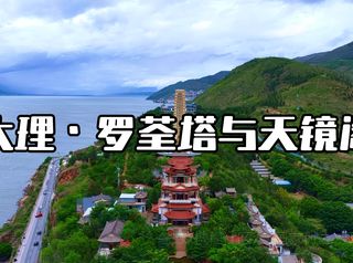 天镜阁在大理洱海东玉案山上,山势到这里忽向洱海伸去,三面临水,悬崖壁立,地势险要,有山环吞海,澄海如镜之势。它是一座四层八面的阁楼,高耸于山巅,与名刹罗荃寺交相辉映。大理罗荃寺有大雄宝殿、毗卢祖师殿等。