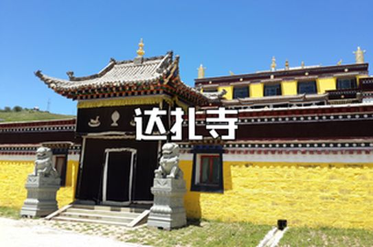 达扎寺的全称为“达扎寺吉祥善法寺院”,位于县城东北部,是一个格鲁派(黄教)寺院。寺院建筑风格别具一格,既有藏族传统的建筑风格,又有汉武建筑风格,两者合二为一,规模宠大壮观。主要建筑有三大扎仓的经堂、达扎活佛的寝宫、寺院藏医门诊部、宗喀巴殿、怙主殿、犀甲护法神殿、时轮塔、菩提塔、尊胜塔、降魔塔,还有僧众住的禅院、转经房等。