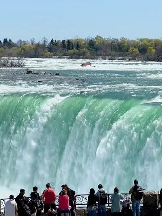 尼亚加拉瀑布是跨国瀑布,位于美国纽约州和加拿大安大略省之间的尼亚加拉河上,是美洲大陆的奇景之一,也被称为世界七大奇景之一。 瀑布在美国与加拿大都有各自的看点,在加拿大一侧可以从另一个角度欣赏大瀑布。在美国这边前来观赏的游人会被瀑布丰沛而浩瀚的水汽和磅礴的气势震撼到。