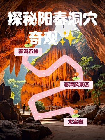 阳春市春湾风景区,位于阳春市春湾镇春湾风景区内,有似“童子拜观音”、“猛狮过岭”、仰天嗥叫的野狼像等石头。春湾旅游景区内群峰扰聚,千姿百态,名胜奇多,有龙宫岩、春湾石林、通天蜡烛、慈云岩、通真岩等景点。春湾湖畔的“通天蜡烛”,山峰奇秀,湖山相映,垂柳轻飘,景色迷人,有小桂林之称。