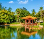 雷琼海口火山群世界地质公园位于海口市石山镇。公园拥有类型多样的火山,堪称一个天然的地质博物馆。在火山口的制高点,能够远眺海口市区和琼州海峡,风光迷人。顺着景区的步道往里走,沿路是葱茏的热带植物,还可以看到诸如玄武岩、熔岩流等火山喷发遗留下的景观,还有一个火山石器文化园,展示2000多年前火山地区的村落用火山石堆砌的村门、制造的石磨、石碗、石盆、石桌、制蔗器等等,置身其中,仿佛回到石器时代。