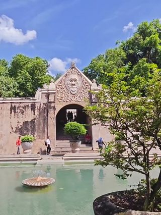 水宫位于日惹苏丹皇宫西南方,是一座由水渠、池塘和宫殿组成的建筑群,曾经是宫殿的豪华娱乐公园、游泳池以及苏丹和他的随从出行用的水路。这座精心设计的休息寓所建于1758年至1765年,由一名葡萄牙建筑师设计修建的。如今你看到的大多是是从前的遗迹,较能代表水宫的景观洗浴池还是后来重建的呢。