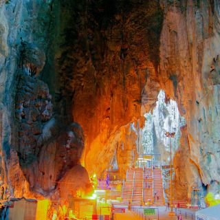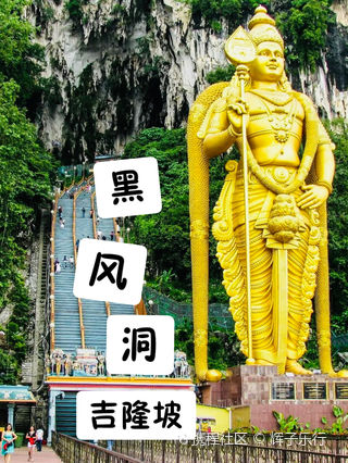 在吉隆坡北部13公里处的怡保路附近,有一块高耸入云的石灰岩,这就是闻名遐迩的黑风洞。黑风洞开阔的露天场地上建有一座印度教神庙——庙洞。 272级台阶通向庙洞,台阶下立有MURUGAN神塑像。Murugan即苏巴马廉王,整个黑风洞都是供奉他的。