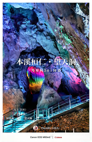 辽宁本溪国家地质公园望天洞位于辽宁省桓仁满族自治县。与五女山、桓龙湖、大雅河漂流形成辽宁东部旅游黄金线路。该景区是桓仁旅游的一大奇观,是国家AAA级旅游区、国家地质公园,因洞口为天窗式,游人从其底部向上仰望,有怀抱红日,目接青天之感而得名。景区距县城15公里,总面积23平方公里,该洞发育于20万年前,主洞长5635米,为北方第一长洞。地下暗河三条,长4000米,有水潭30余个,水深达7米,洞内有6000余平方米的大厅,可容纳万人。洞内的迷宫更为奇特,被称为“北国第一洞,迷宫世无双”。主洞形态为廊道式、厅堂式、迷宫式。洞内钟乳丛生,晶莹剔透,如峰如柱、如林如笋、如塔如佛、如花如瀑;各种边石坝数不胜数,既像梯田,又如长城,数量级类型国内第一;某些地点的钟乳石继续生长,速度居国内第一;洞中“迷宫”分上、中、下三层,洞中有洞,洞洞相通,门中有门,门门可行,迂回曲折,扑朔迷离,被洞穴专家称之为“北国第一洞,迷宫世无双”。在洞中,道路曲折,忽上忽下。迷宫中多条道路环环相套,皆都类似,令人顿生乐趣。入其内,行来走去,难分难辨,妙趣横生。那条条道路都能走出迷宫,出来之后却又景象各异。这可谓真正的迷宫,它的范围极大,初步探测约有一万平方米,它到底有多少个洞口谁也统计不了,至今没有人敢去走完这个迷宫……中科院专家考察后确认,洞内6000平方米大厅和上、中、下三层的万米迷宫!北国奇葩在桓仁,奥妙神奇数洞天。一峰插云天,双洞望长空。天棚挂钟乳,夹壁游蛟龙,洞在奇幻里,人在飘渺中。
