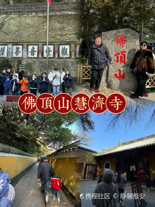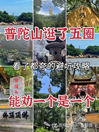 慧济禅寺位于普陀山高处佛顶山上,又称佛顶山寺,是普陀山三大寺之一。这里有名的是观音堂里的注生娘娘,据说是很灵验的送子观音。另外,由于地处山顶,寺庙前的一块平台是观赏日出日落的好地方。慧济禅寺建筑别具一格,依山而建,横向排列,殿堂宽敞壮丽,深藏于森林之中,以环境清幽著称。整座寺庙内有4座殿、7座堂、5座阁楼以及库房等,共145间。该寺布局因山制宜,大雄宝殿、大悲殿、藏经楼、玉皇殿、方丈室等都在同一条平行线上,与左右厢房相拥,颇有浙东园林建筑风味。如果你体力好可以选择徒步登山,沿着黄墙夹道的嵌有莲花的石板道上步行上来,一路可以看到很多虔诚的信徒在那里三拜九叩,口中念念有词。当然你也可以选择索道上山,步行下山,比较节省体力。沿着香云路一路走下来就是法雨寺,沿途还能看到“海天佛国”的巨大岩石,天气好的时候能看到云雾环绕山腰。游览慧济禅寺,你可以在莲花池、“佛顶顶佛”墙、“同登彼岸”石碑等几个小景观处拍照留念,其他就属大雄宝殿和观音殿香火较为旺盛。与普陀山其它寺院不同,主殿大雄宝殿,供奉的是释迦牟尼佛像,两边侍立弟子阿难与迦叶。大殿两厢各塑有10尊塑像,是佛教传说中的“二十诸天”。大雄宝殿屋顶全用不同颜色的琉璃瓦盖成,如果是坐缆车上山,在阳光下有可能会看到“佛光普照”的绮丽景观。在大雄宝殿的左手边就是观音堂,堂内汇集了根据历代画家所绘观音像而镌的石刻观音,是普陀山宗教艺术的精华之一。当然这里也是很多来普陀山祈求生育的人必拜之地,听说很是灵验。在这里烧香心要诚,三注香足以,可殿内严禁喧哗、吸烟、拍摄及点香烛。拜完了佛可以去慧济禅寺后门看一看“普陀鹅耳枥”,这棵树是200多年前由缅甸僧人到普陀山朝拜时带来的,目前列为国家二级树种,也是很多游客会来观赏的景观。