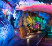 大石围天坑群位于广西百色乐业县西部,以独特的巨型漏斗状天坑地貌而闻名,是百色地区有名的景点之一。这里的天坑规模巨大,数量众多,天坑内还有奇特的地下溶洞风光,造型美丽奇幻,是观景、摄影的绝妙去处。