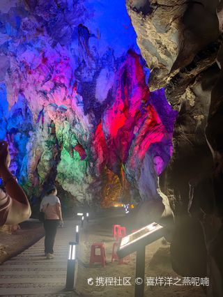 吉星岩位于德保县南部,距离县城12公里。岩洞穿越五座大山,大的特点是水陆兼备。在岩洞内,钟乳石倒影在地下河的流水中,造型优美。洞内分为地下河、中层洞和摩天洞三层,游人能参观的是其中两层,分为吉星迎宾、福如东海、瑶池仙境、诗画壮乡、吉星岩-花好月圆等5个游览区,游程约2公里。洞内的第一组景观为吉星迎宾,包括岩洞入口的祈福大道和洞内的第一大厅。走在祈福大道上,穿过好运铃、长命锁、幸福门就进入了第一大厅。大厅宽敞,可容2000多人。此处以吉祥文化为主题,以福禄寿为元素,能看到寿星的龙头拐杖、禄星的如意宝贝和福星的倒挂福贴,以及蛤蚧迎宾、瑞狮呈祥、灵羊下凡等象形石。后面的“壮乡梯田”也是看点之一,在灯光的映衬下,梯田时而溪水潺潺,时而金稻铺地,配合着变幻的背景音乐,让人沉浸在神秘的壮乡情怀中。另外,景区全票价为160元,平时常会有折扣优惠,详情以景区公告为准。
