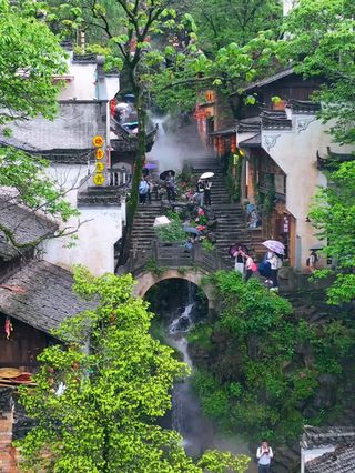 篁岭古村,属典型山居村落,周边千棵古树环绕,万亩梯田簇拥,造就了世外桃源般的山居田园生活。 这里自然环境优美,历史人文厚重,是古徽州历史文化名村。挂在山崖上的篁岭古村,地无三尺平,数百年来,村民早已习惯用平和的心态与崎岖的地形“交流”,绘就出了一处“晒秋人家”风情画。