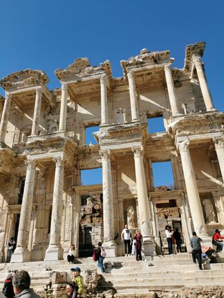 塞尔苏斯图书馆建于1800年前,是以弗所的标志性景点,伫立在乌斯·塞尔苏斯的陵墓之上,由这位公元两世纪的罗马统治者之子为纪念他修建而成。图书馆壁龛中的藏书曾经达到1.2万卷之多,目前只有正面部分保存完好,但仍可以感受到他建筑之雄伟壮观,细节之精致繁复,门口的四女神像栩栩如生,可窥见古罗马时期之昔日辉煌和他们对知识的敬仰与追求。