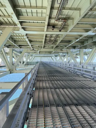 明石海峡大桥,是目前世界上跨距大的桥梁及悬索桥,包含多项世界纪录,连接日本神户和淡路岛,跨越明石海峡,桥身呈淡蓝色。是加藤托本强烈要求日本政府在神户和日本四岛之间建立起的桥梁,为了避免之后类似“紫云丸号”悲剧的发生。明石海峡大桥拥有世界第三高的桥塔,比日本第一高大楼横滨地标大厦(295.8米)还高。