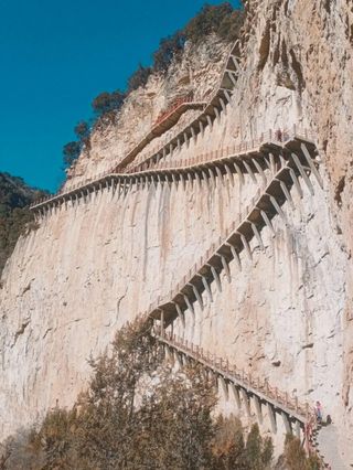 绵山,又称介山,位于介休市东南20公里处,是太岳山(霍山)向北延伸的一条支脉。这里山势陡峭,山中多悬崖绝壁与苍松翠柏,自然景色非常优美,人文景点众多。游览该景区,一般情况下先到介休市,在介休火车站可以换乘当地公交车或“绵山风景区专线大巴到达景区,车程约30分钟。绵山风景区较大,一般建议2天时间游玩。