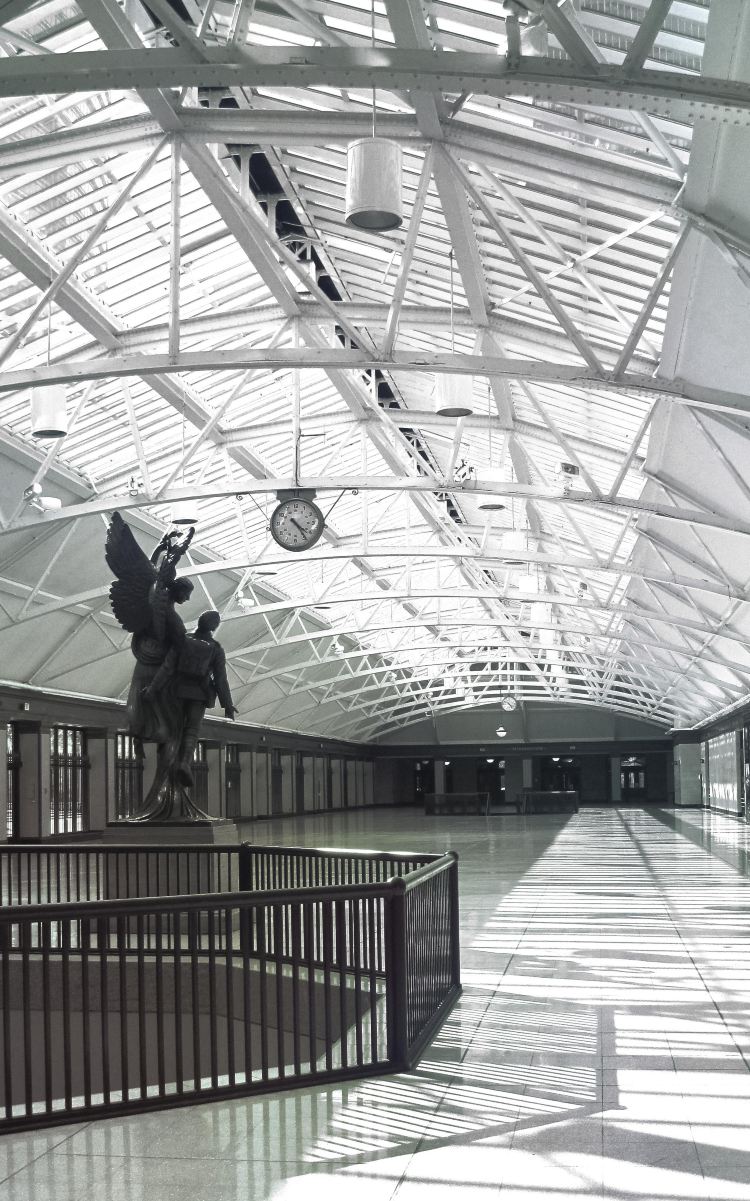 这是一座美丽的新罗马式灰色石头建筑,曾经是繁华的火车站,现设有美食广场,周围还有一些有趣的雕像。