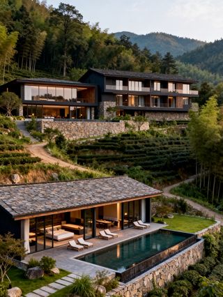怪石角,也叫怪石谷,先民因无法解释其成因而以怪为名,是整个莫干山为奇特的岩石景观,其地质成因与构造断裂及岩石岩性、节理有关。由于大自然的长期风化剥蚀,形成许多肖形景观,如骆驼峰、鹰龟岩、猩猩石、风动石等。怪石角也是欣赏莫干山落日景观的好地方。