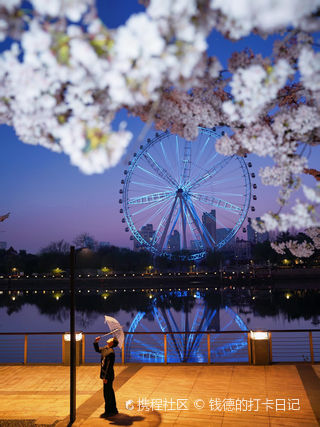 湖州经济技术开发区内,耸立着一座82米高的摩天轮,是湖州市地标性文化建筑。摩天轮是飞凰摩天轮游乐园的明星游乐设备,旋转大轮由八根巨型立柱撑起,外圈有42个轿厢,每圈运行时间约18分钟,在轿厢内随着转轮的转动升到高处,隔窗远眺,湖城美景一览无余。