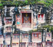 巴中市巴州区恩阳古镇位于四川省东北部,2008年被评为中国历史文化名镇。在南北朝梁武帝普通六年(公元525年)建制迄今已1470余年,历史上设置郡县时间达860余年。恩阳古镇地处巴中市要冲,历史上是东北有名的水码头,系米仓古道繁华的集镇,素有“早迟恩阳河”之说。城镇内现存四川省保存较为完好的明、清时代古建筑群,面积达0.5平方公里。镇内两河环绕,四面青山环绕,气候湿润,地貌以浅丘、深丘为主,独特的地理特征孕育了众多的自然景观,镇北有白云寺,镇西有文治寨、千佛岩,镇东有登科寺,镇东南有巍峨的义阳山、普贤寺、红梅阁等。历史上素有恩阳十八景之说,如文治护城、千佛论法、五子登科、马鞍披霞等。