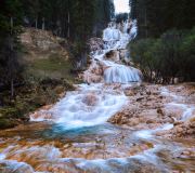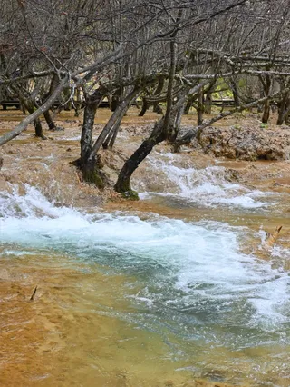牟尼沟风景区地处青藏高原,位于四川省阿坝州松潘县城西15公里处的山源河谷地带,海拔2800--4250米,年平均气温7摄氏度,是以世界罕见的高寒山区喀斯特(岩溶)作用为主形成的多种自然景观的地质博物馆,景区内的钙化堆积形状多种多样,加上后期地质改造,形成众多类型的钙化地貌。