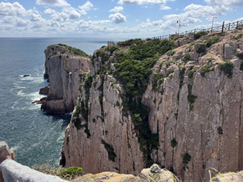 东崖绝壁位于嵊山岛的东端,高达数十米的陡崖绵延伸入大海,峭壁下浪涛汹涌,非常壮观。来到嵊山的游客几乎都不会错过这里美丽的日出,清晨四五点,喷薄而出的红日从海上升起,金色的阳光洒向海面,美得动人心魄。