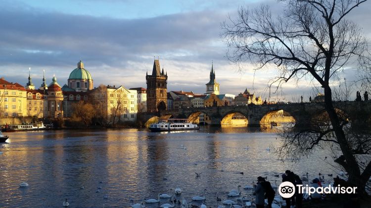 该海滩由蜿蜒的伏尔塔瓦河沿岸的鹅卵石和沙地组成,在这里可以看到建造宏伟的查尔斯桥和翱翔的天鹅,夜景美不胜收。
